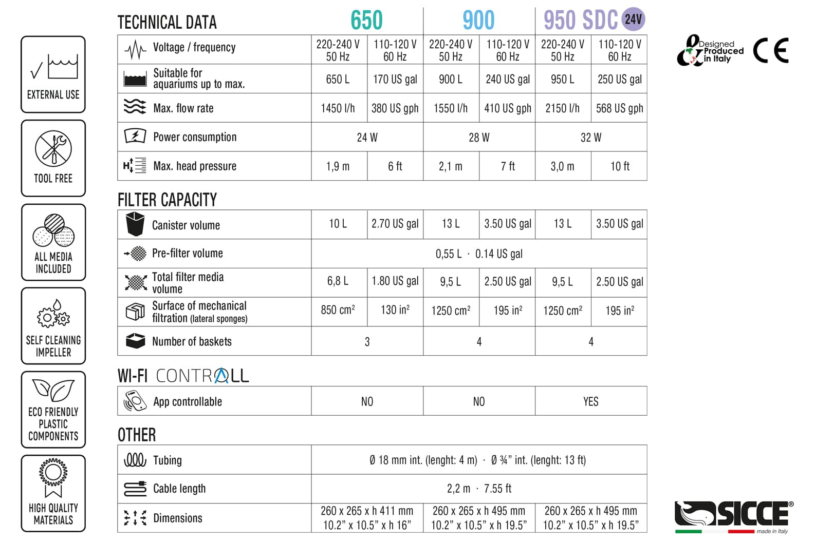 - Quiet Smart energy design Toll free Wi-fi app controllable (only model 950 SDC)