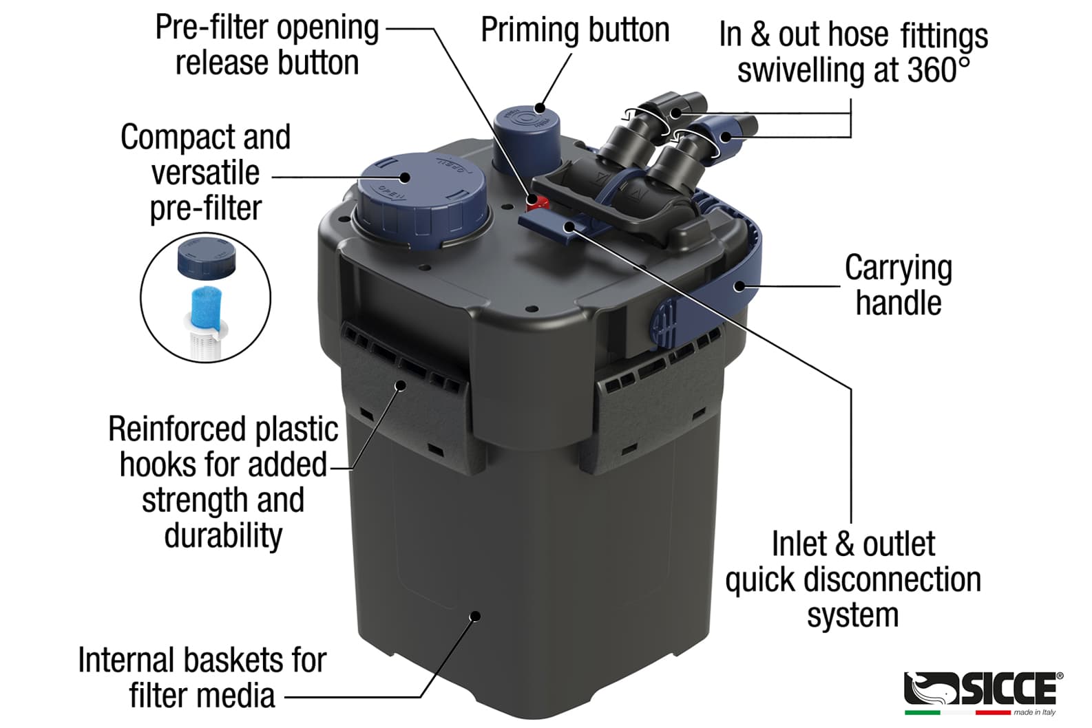 - Versatile pre-filter Eco friendly recycled plastic High quality materials